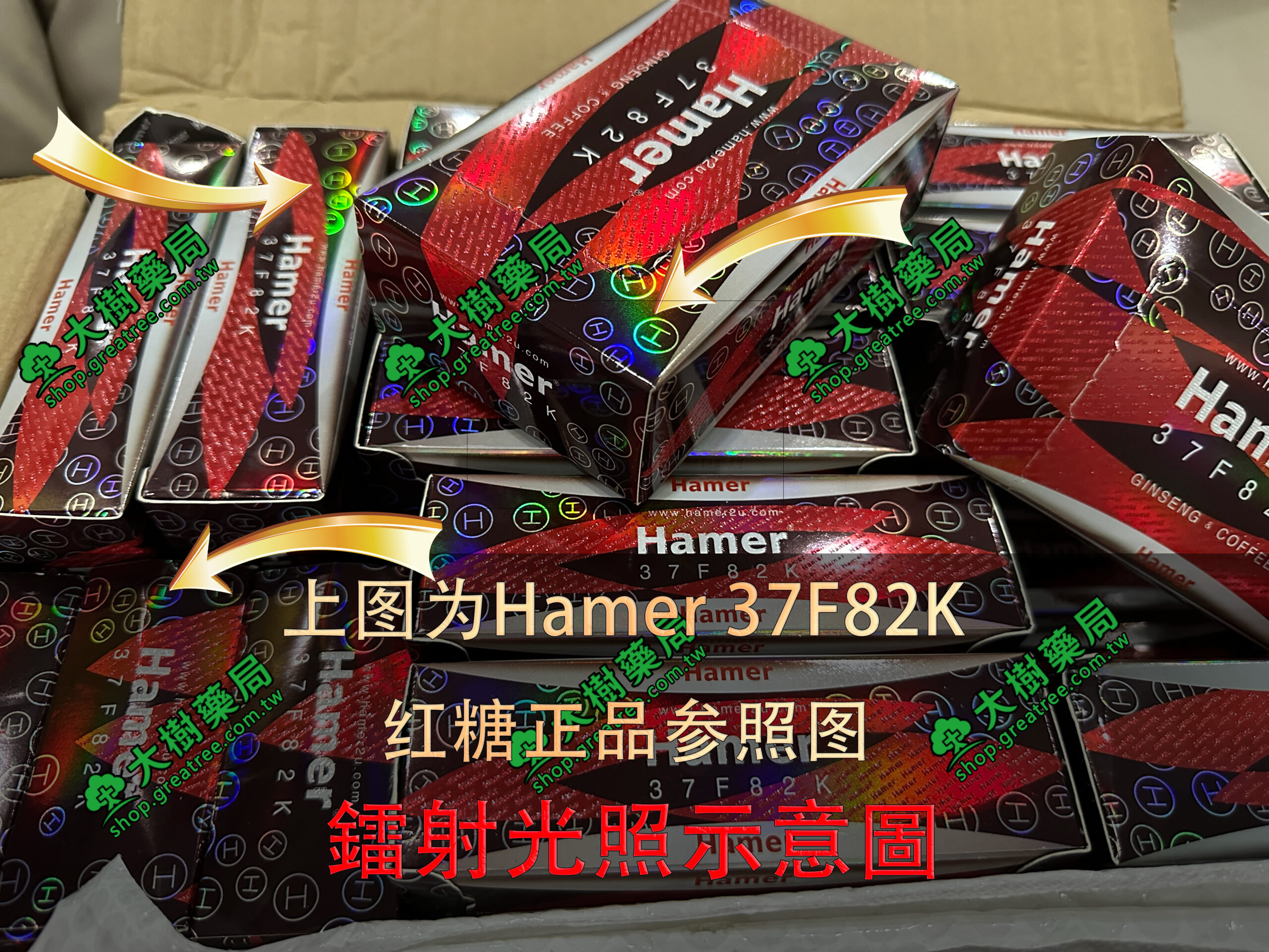 例如:上图为Hamer 37F82K 红糖正品参照图,包装无论是正面,反面,以及侧面都是镭射工艺包装,在在灯光的照耀下会展现出激光彩虹鐳射出五顏六色的。