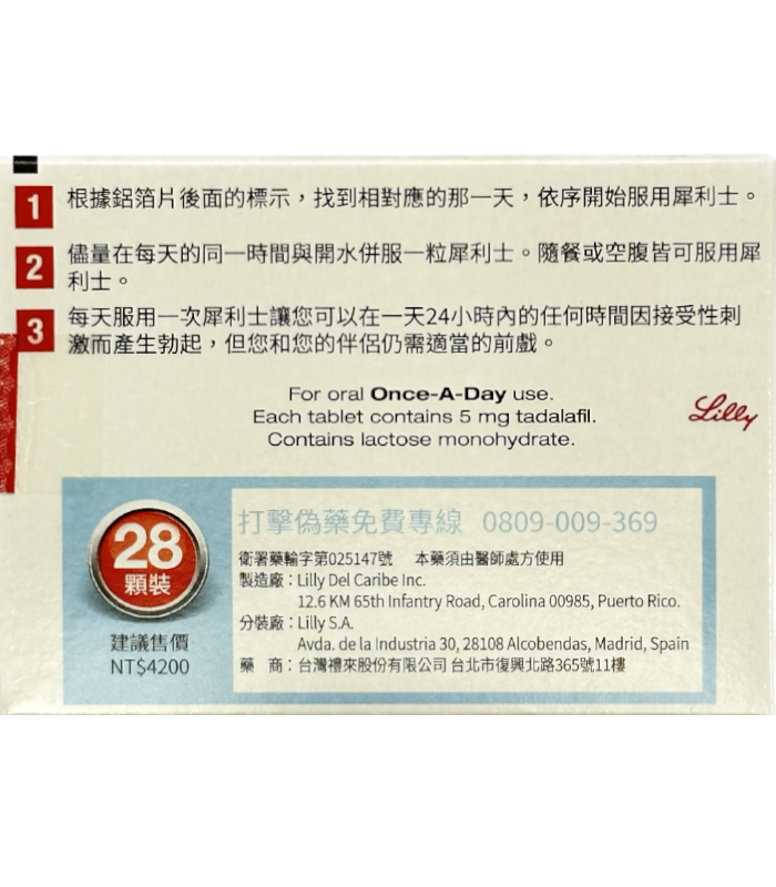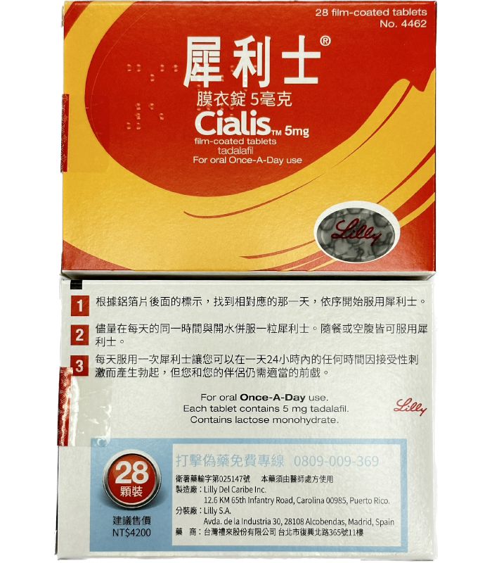 犀利士膜衣錠 Cialis (28錠/盒) Tadalafil 5mg (Once-A-Day use)丨大樹藥局官方直營