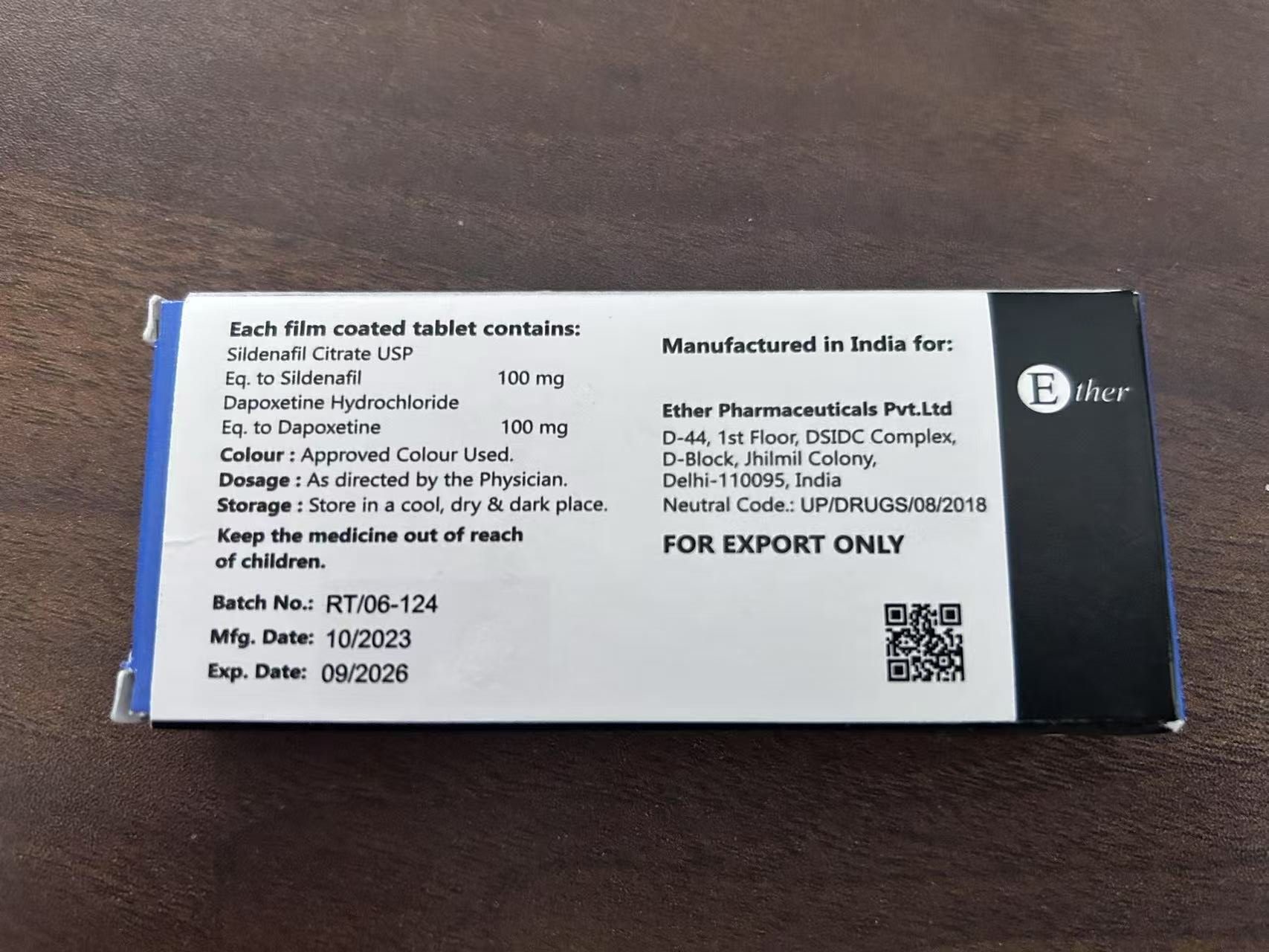 | 達泊西汀 | 100mg | 延遲射精衝動 | 1小時達峰值 |