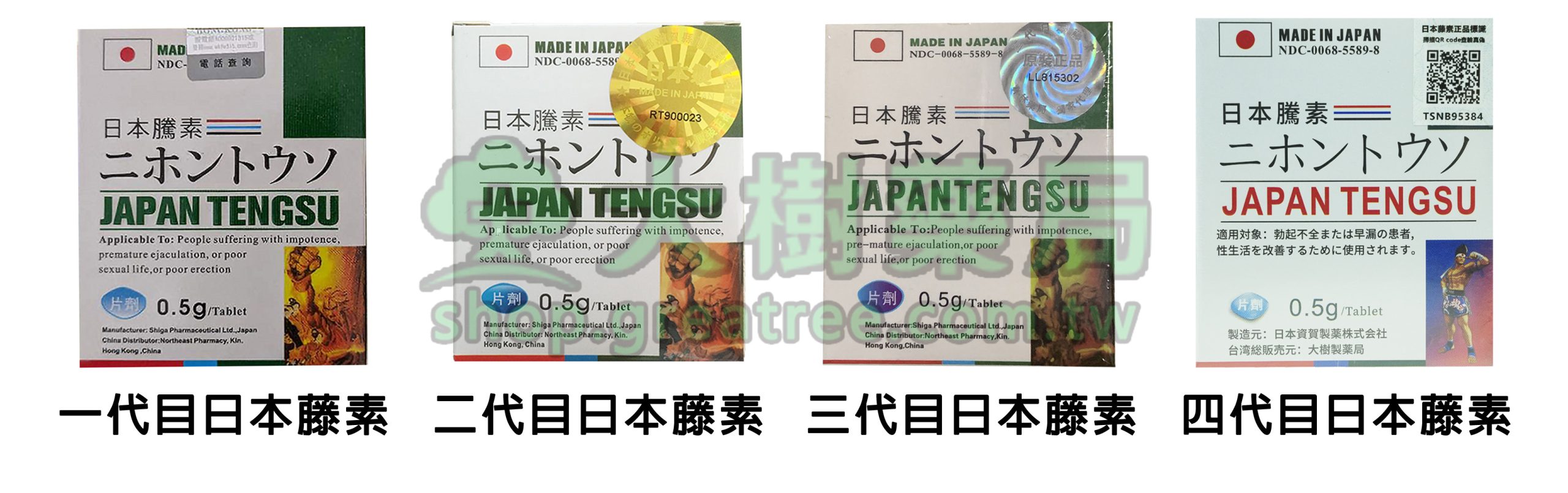 在過去幾年,市面上售賣的都是第一代/二代日本藤素,因為仿冒品過多,後續升級為第三代日本藤素,直接在防偽標籤上刻印了防偽碼,每一盒藤素僅有一個可查驗的防偽碼,一碼一盒一查。才得以杜絕偽藥!