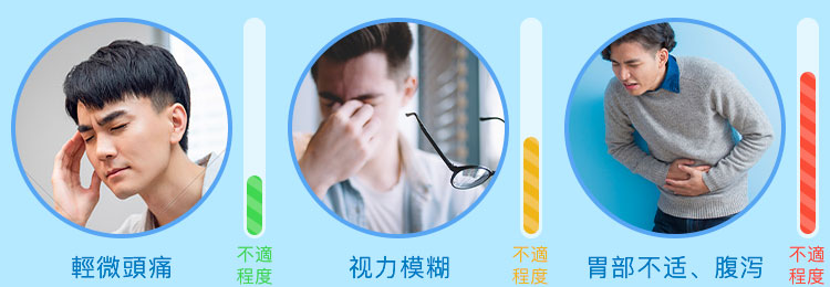 若出現輕微頭痛,可適量補充溫水或使用冷敷貼片;鼻塞時可用生理食鹽水清洗鼻腔。嚴重不適應立即聯繫線上藥師諮詢。